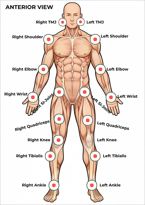 Pain areas on the body map are completed in Section L (after your questionnaire answers).